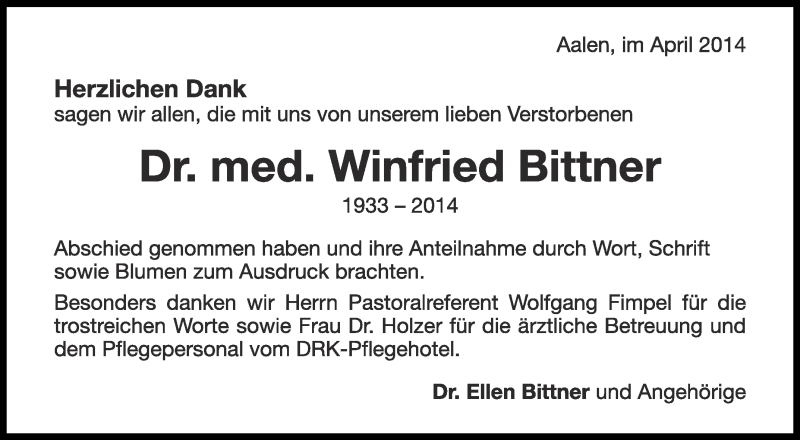 Hier finden Sie alle Traueranzeigen aus der Zeitung, die bisher für Winfried Bittner erschienen sind. Weitere Traueranzeigen, die in der Zeitung erscheinen, werden hier ebenfalls aufgelistet